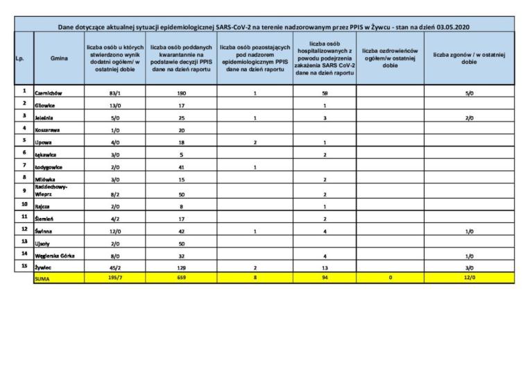 Aktualna sytuacja epidemiologiczna na Żywiecczyźnie [03.05.2020] Opublikowano niedziela, 03 05 2020 Utworzono: niedziela, 03 05 2020 źródło: psse.zywiec.pl Udostępnij Drukuj E-mail Poprzedni artykuł Następny artykuł