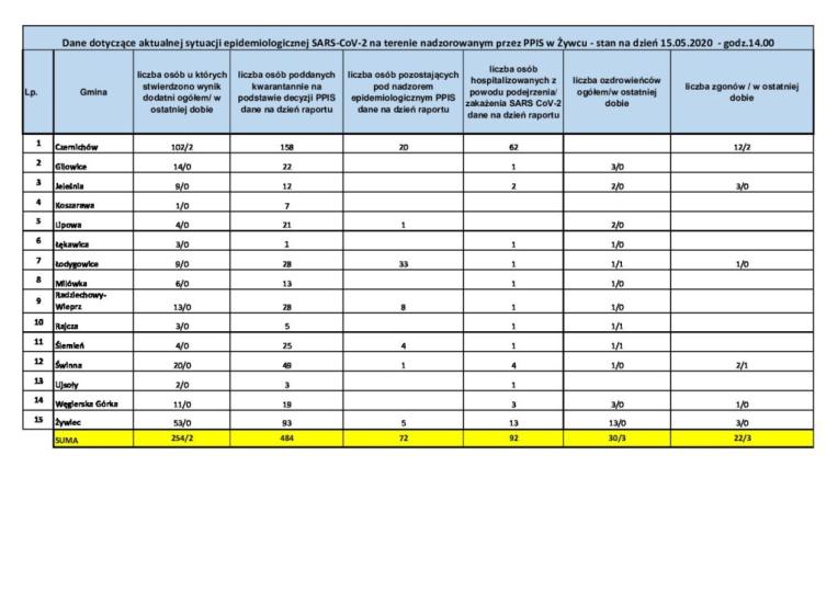 Aktualna sytuacja epidemiologiczna na Żywiecczyźnie [15.05.2020] Opublikowano piątek, 15 05 2020 Utworzono: piątek, 15 05 2020 źródło: psse.zywiec.pl Udostępnij Drukuj E-mail Poprzedni artykuł Następny artykuł