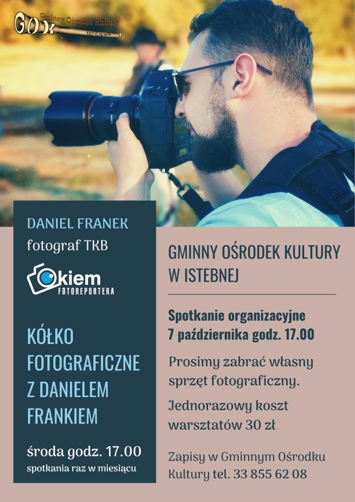 Już niebawem w Gminny Ośrodek Kultury w Istebnej swą działalność rozpocznie Kółko Fotograficzne z Danielem Frankiem Okiem Fotoreportera znanym z setek przepięknych sesji zdjęciowych zrealizowanych podczas najważniejszych imprez kulturalnych w Beskidzie Śląskim i Żywieckim.