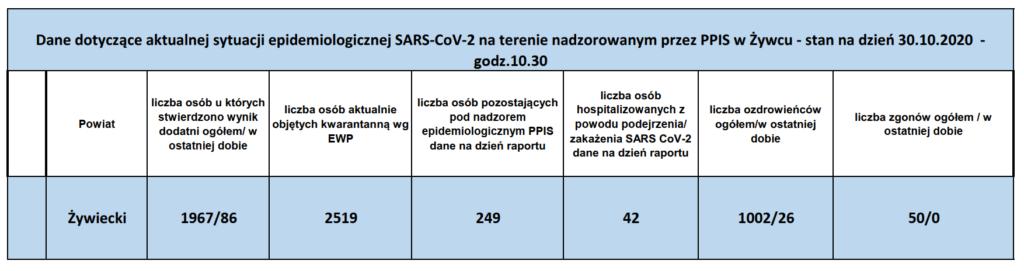 Aktualna sytuacja epidemiologiczna na Żywiecczyźnie [30.10.2020] Opublikowano piątek, 30 10 2020 Utworzono: piątek, 30 10 2020 źródło: Sanepid Żywiec Udostępnij Drukuj E-mail Poprzedni artykuł Następny artykuł