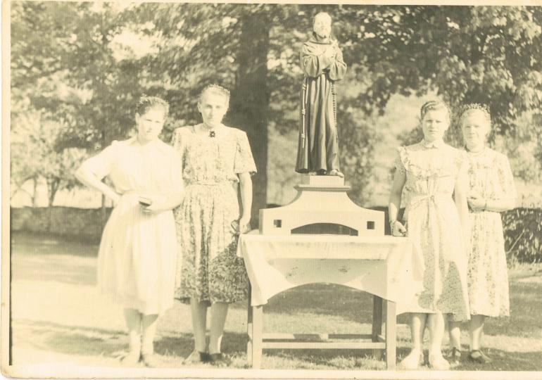 Zdjęcia przedstawiają dziewczęta noszące feretron a kolejne dwa - prawdopodobnie młodzież po przyjęciu sakramentu bierzmowania.