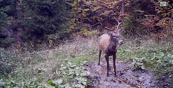 Zwierzę zostało przyłapane za pomocą fotopułapki. Autorem filmu jest przyrodnik Michał Figura .