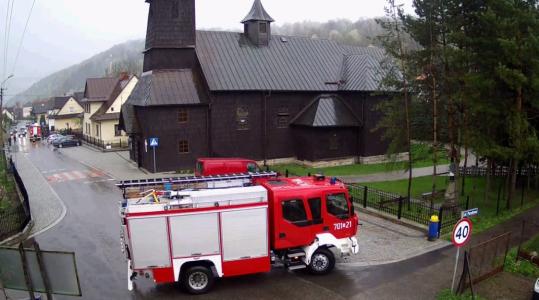 Akcja straży w Żabnicy przy kolizji auta z płotem (nagranie)
