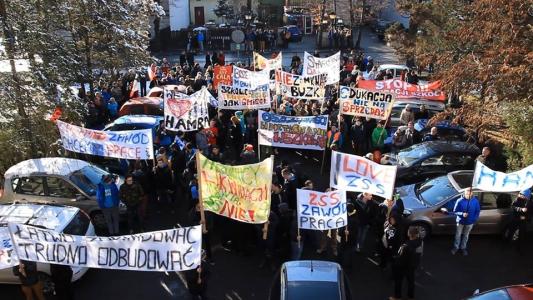 Pikieta w obronie Zespołu Szkół Zawodowych i Ogólnokształcących w Węgierskiej Górce i Zespołu Szkół Samochodowych w Żywcu.