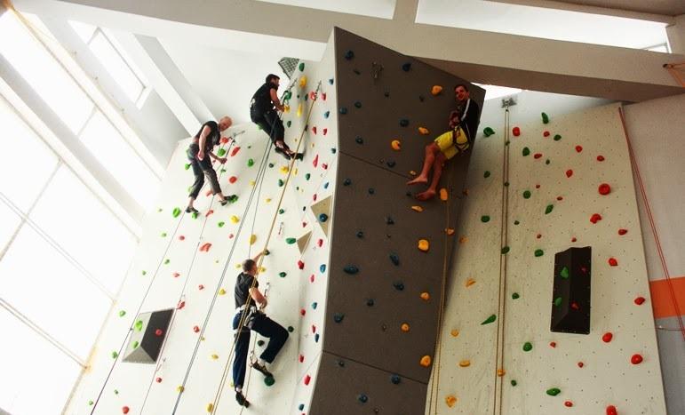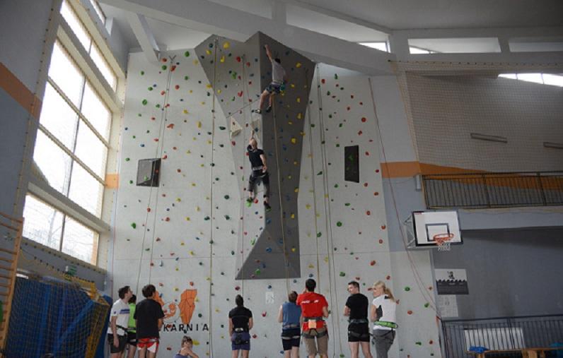 Niebywałą atrakcją w obiekcie hali sportowej w Rajczy jest ścianka wspinaczkowa.