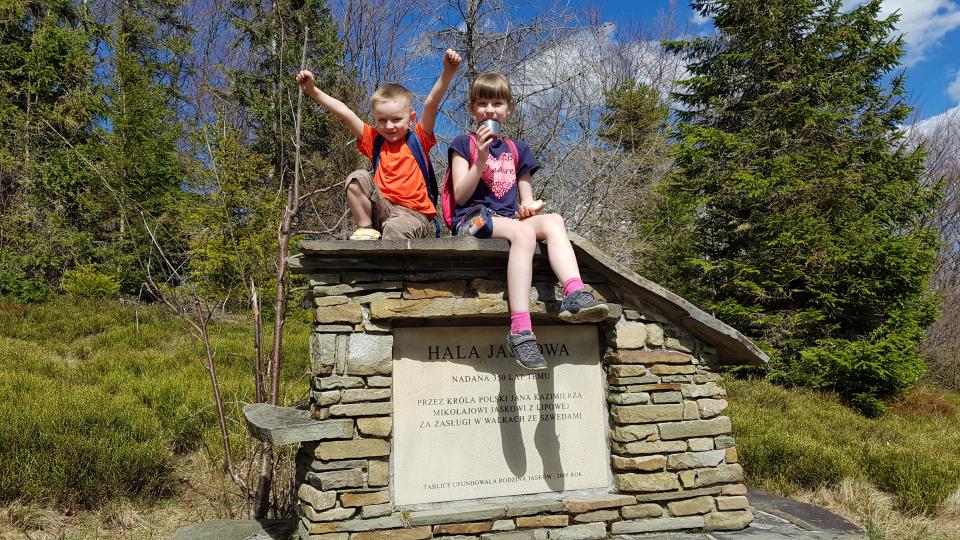 Spokojnie zdobywamy wysokość, mijając Równię, by około w 3/4 podejścia dotrzeć do Hali Jaskowej (900 m n.p.m.), która została w XVII wieku sztucznie utworzona przez człowieka z przeznaczeniem na pastwiska i była użytkowana do połowy XX wieku. Teraz jest już częściowo zarośnięta lasem i dzieli się na kilka mniejszych polan. O okresie pasterskim przypomina jedynie kamień pamiątkowy informujący o nadaniu jej na własność przez króla Jana Kazimierza, Mikołajowi Jaskowi sołtysowi z Lipowej, od którego wzięła swoją nazwę, za zasługi w walce ze Szwedami.