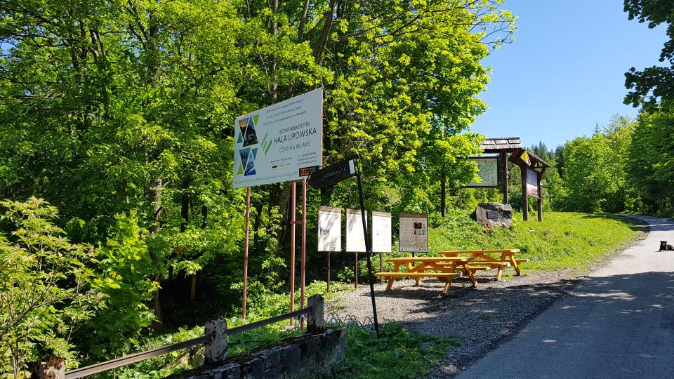 Po odpoczynku i nasyceniu oczu widokami ruszamy dalej do odległego raptem niecały kilometr schroniska na hali Lipowskiej. Zlokalizowane jest obok niego miejsce biwakowe oraz plac zabaw dla dzieci. Idealne miejsce na rozpalenie ogniska.