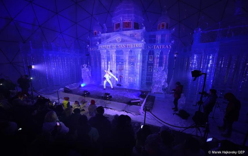 O precyzję detali zadbał Adam Bakoš z zespołem słowackich, czeskich i hiszpańskich rzeźbiarzy. Zbudowano ją aż z 1880 bloków lodu, które łącznie ważą ponad 225 ton.