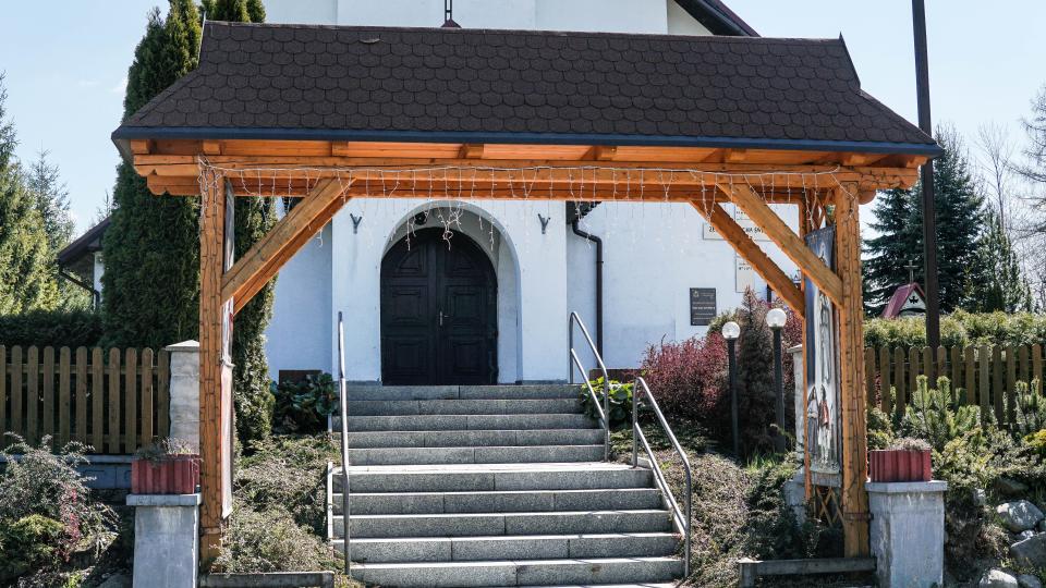 Nowy kościół poświęcił 4 VI 1987r ks. kardynał Franciszek Macharski odprawiając pierwszą Mszę św. ku czci Zesłania Ducha Świętego. W czerwcu 1992r poświęcone zostały przez ks. bpa Tadeusza Rakoczego dzwony, na które parafianie składali się przez 2 lata. W 2002 roku rzeźbiarz z Białki Tatrzańskiej wykonał stacje drogi krzyżowej, która została poświęcona w czasie wizytacji przez ks. bpa T. Rakoczego. Następnego roku kamieniarz z Węgierskiej Górki wykonał dla naszego kościoła z marmuru ambonkę, chrzcielnicę i wykończył ołtarz soborowy. Ks. Stanisław Czernik polecił nam młodego, zdolnego rzeźbiarza z Białego Dunajca, p. Tadeusza Franosza, który wykonał z drzewa lipowego płaskorzeźbę ołtarzową przedstawiającą scenę Zesłania Ducha Świętego. Projekt tej rzeźby zrobiła siostra Teofora ze Zgromadzenia SS. Boromeuszek. Dziełem tego rzeźbiarza jest także popiersie Jana Pawła II. W marcu b.r. stolarz z Koniakowa wykonał sedilia do prezbiterium.