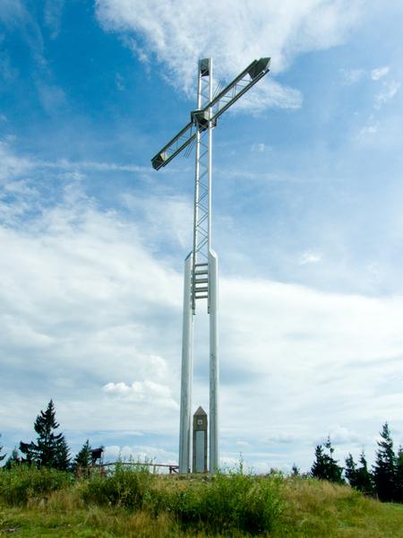 Jubileuszowy Krzyż Ziemi Żywieckiej został zaprojektowany przez mgr inż. Jacka Niedźwieckiego i mgr inż. Józefa Pasierbka, a wykonany przez Mostostal Zabrze Zakład Montażowo - Produkcyjny Czechowice. Ma wysokość dokładnie 23,5 metra.